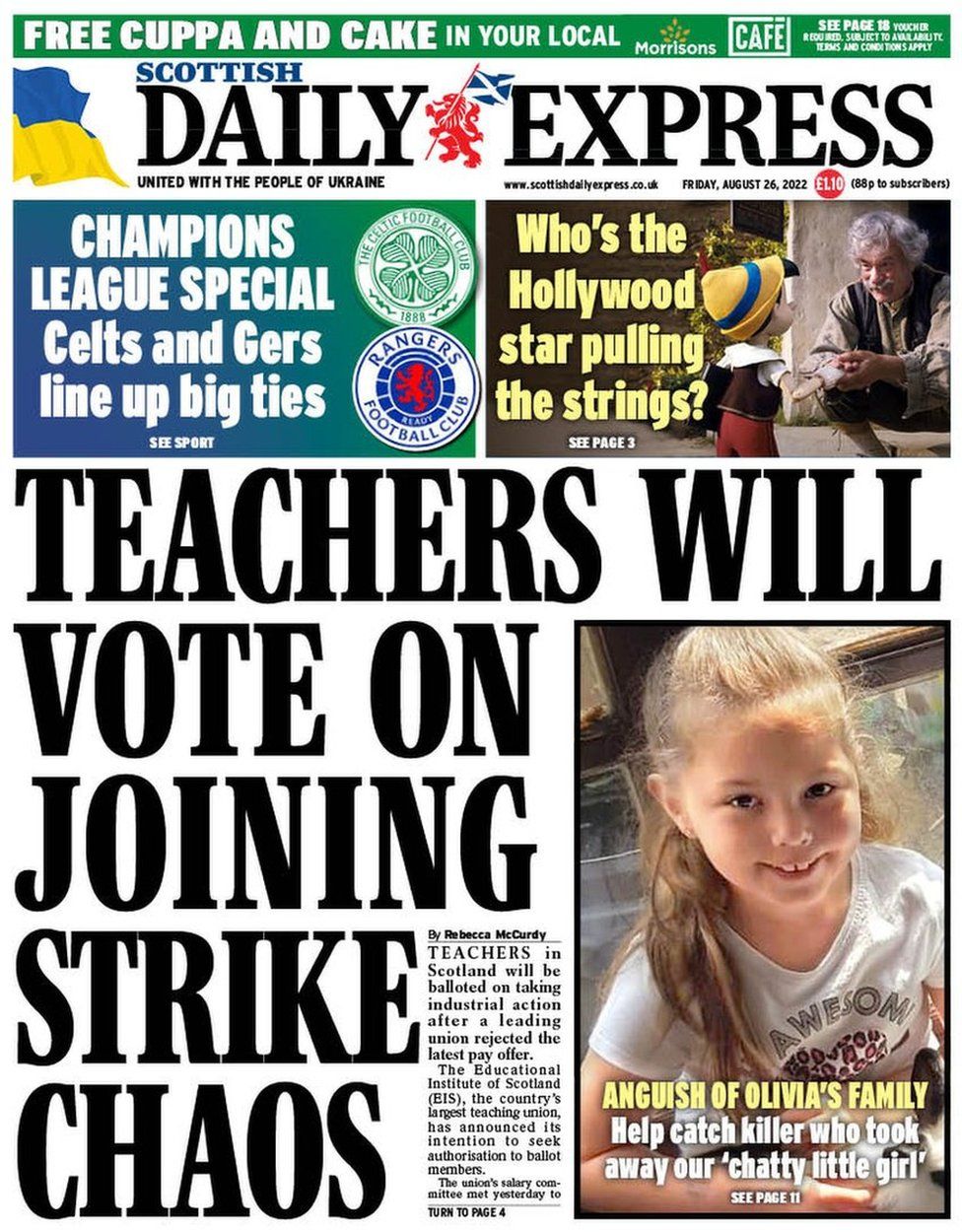The Scottish Daily Express says early-years staff, support workers and administration personnel in Glasgow are among school employees who will strike from 6 September