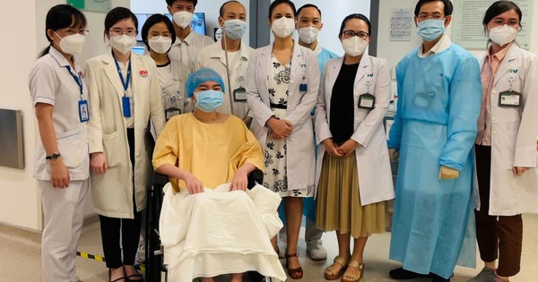 Bệnh nhân V.M.B sau khi kết thúc liệu trình xạ trị. (Ảnh do bệnh viện cung cấp)